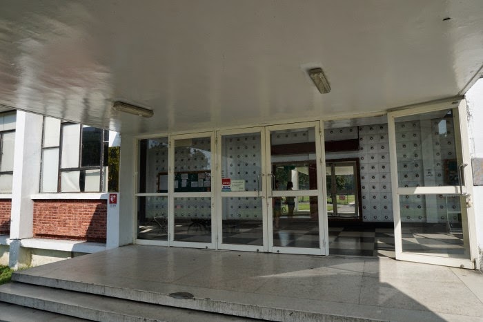 其實今天跑來舊體,也是趕快把自己一些記憶的角落拍照留念,否則哪天這建築被台大拆了,就哭哭也來不及了。我印象中的這個門,曾因為要早上很早來搶體育課的選課,跟傑克五早六早(不是七早八早)就來這裡排隊交志願。因此,玄關很有印象哩。