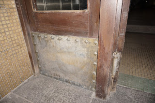 後面這棟日本時代蓋的地質學講座教室,整個規模比起來比我們氣象學講座要大,真是豪華,而且所有門把都比氣象學講座教室要高。目前有些格局已經打掉,但是門框仍有遺跡。大門下面的金屬板超有趣。